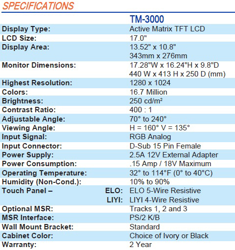 หน้าจอทัชสกรีน17นิ้ว เป็นอุปกรณ์ใช้งานเพียงแค่ปลายนิ้วแตะที่หน้าจอของจอทัชสกรีนสามารถใช้งานได้สะดวกรวดเร็วและสามารถใช้งานรวมกับเครื่องอ่านบาร์โค้ด เครื่องพิมพ์ใบเสร็จ ลิ้นชักเก็บเงิน เครื่องคอมพิวเตอร์เป็นต้น การใช้งานเหมาะสำหรับห้างร้าน ร้านค้า ร้านขายยา ร้านอาหาร ร้านสะดวกซื้อ เคาน์เตอร์เซอร์วิส เคาน์เตอร์โรงแรม เคาน์เตอร์โรงภาพยนต์ เป็นต้น